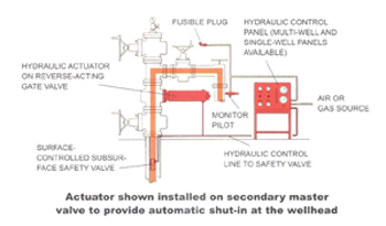 | Hydraulic drive safety valve,as executive part of safety system on well,can classify both parts of preparation valve and driver.High-pressure oil enters the empty chamber of the driver and then press the bottom spring as to open the valve,if the pressure exceed the bearing ablility of wellhead assembly,by the sign past through the sensor,the control mechanism unload the pressure out of the oil cylinder, and the spring pushes the valve stem to close the valve and wellhead assembly so as to ensure equipent safe.