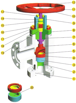 Orifice choke valve is molded of two pieces of special carbon tungsten plates with rather ability of erosion resistance, one of which rotates to alter the concentricity between the upper orifice and lower orifice of two plates so as to adjust the flow-rate of fluid or gas. The valve is used for manifold such as drilling, fracture, mud circuit, ground high-pressure gas injection/production. It has a outstanding feature that the pressure difference between inlet and outlet, as closing, can press both of the plates fast together so as to put into effect of sealing cutting, especially in the case that the pressure suddenly rises or falls,the pre-set sign-rate of high/low pressure sensor can be helpful for automatic closing/shut so as to avoid heavy accident. It is outstanding advantage that it has long working life and ability of erosion/corrosion resistance in comparing with other choke valves.