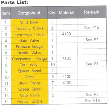 1.Application Choke manifold is necessary device to control the well kick successfully and execute the pressure control technology on oil/gas well in the course of drilling, as it is, the device is adopted to execute new drilling-well's technique of balance pressure, which can avoid pollution of oil-layer, improve the speed of drilling and control blowout effectively. One end of the device connects with the side flange of BOP spool. When BOP closes, it can control the finite pressure from casing by adjusting the choke valve's opening, so balanced drilling can work under minimum pressure-difference . 2、Assembly &structure Choke manifold consists of choke valve, gate valve, pipeline, ffittings and pressure gauge etc, see gate valve part and choke valve part in the above drawing. 3、Working principle When the pressure rising in well,fluid in well can be released in utilization of the choke valve opening/closeing in choke manifold to control casing pressure, which can directly blow out through gate valve as the casing pressure is quite high. 4、Specification Pressure level is divided into five levels, i.e. 14MPa,21MPa, 35MPa, 70MPa and 105MPa, it can be also designed according to the requirement of customer. 5、0peration requirement (1)All the working pressures of parts in choke manifold should be matched with the working pressure of BOP stack used; (2)Choke manifold should be installed at the place where operator approach it conveniently, pressure test should be executed as installation , while the sealing test pressure should be equal to the rated working pressure; (3)Pipeline should be so smooth and straight as possible, the corner of the pipeline should be made of 120o haped forged steel bent pipe, which should have adequately large bore; (4)The working pressure gauge should be installed; (5)In winter, the choke manifold be able to work under a low temp condition.