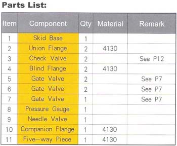 1.Application In case of increase of the well head pressure, the kill manifold can provide a means of pumping heavy drilling fluid into the well to balance bottom hole pressure so that well kick and blowout can be prevented. In this case. by using blowdown lines connected to then kill manifold. Then increasing well head pressure also can be released directly for bottom hole pressure release. Or water and extinguishing agent can be injected into then well by means of then kill manifold. The check valves on the kill manifold. Only allow injection of kill fluid or other fluids into the well bore through themselves , but do not allow any backflow so as to perform the kill operation or other operati 2.Structure The kill manifold consists of check valves . gate vales, pressure gauges and pipelines . The one end of the kill manifold is connected to the drilling spool and the other end is connected to the pump . The kill manifold and choke manifold and both designed to APL16C and be used together . The kill manifold is available for pressure ratings of 14MPa , 21MPa , 35MPa and 70MPa . 3 .Operating Requirements (1) working pressure of all pipelines . Gate valves and check valves shall be compatible with that of the BOP stack used . (2) The kill manifold is not intended to be used as common lines for pouring drilling fluid .